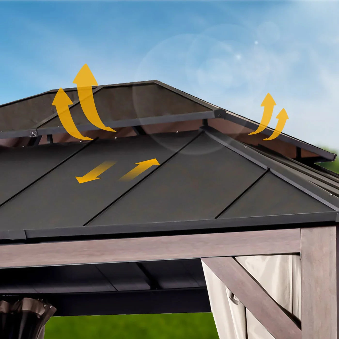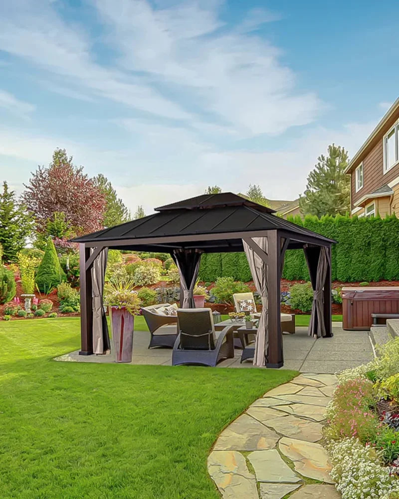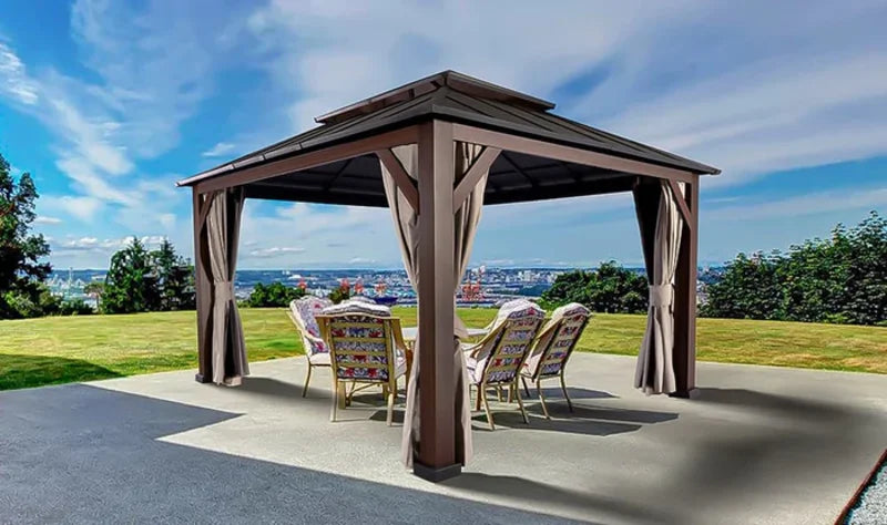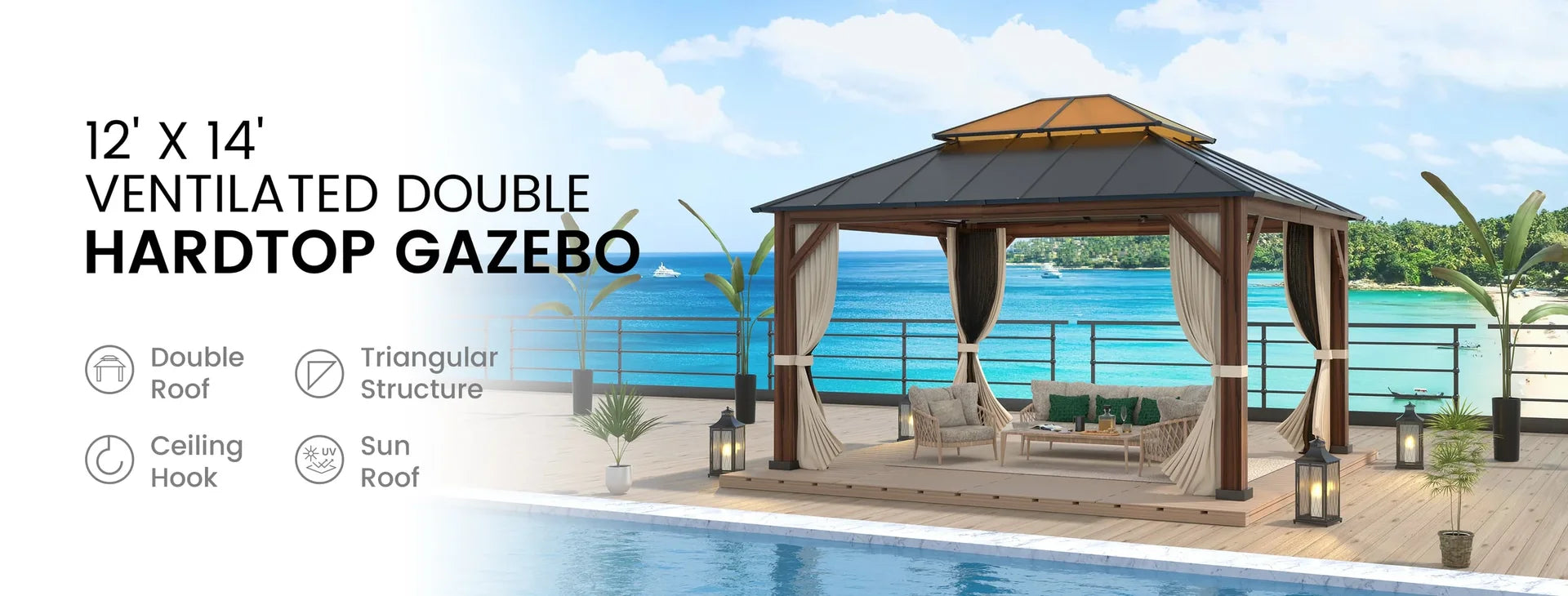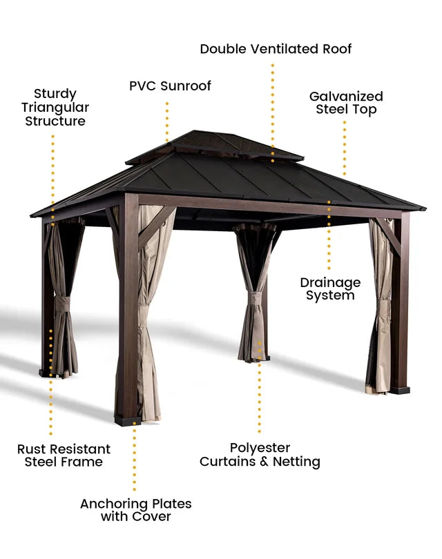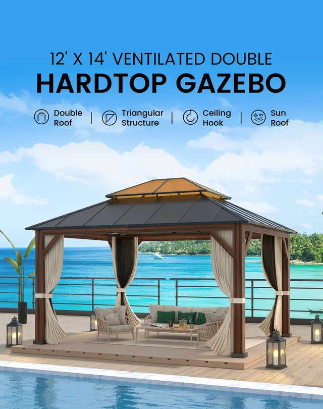 12' x 14' Alps Hardtop Gazebo with Double Roof, Aluminum Frame, Curtain & Netting