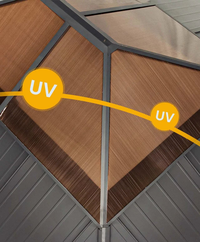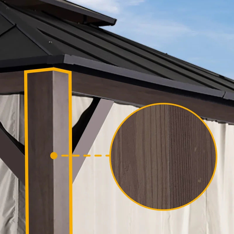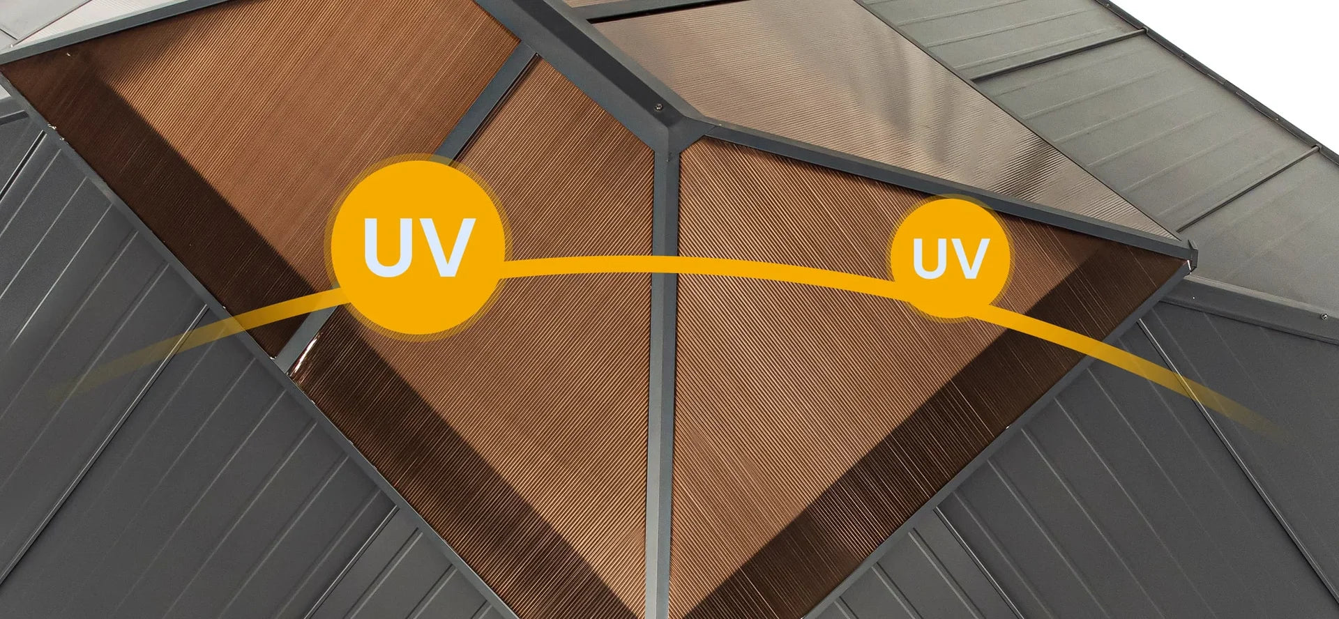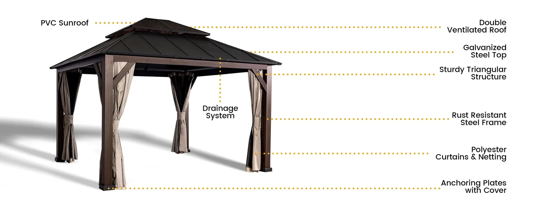 The bottom roof is strong resistant galvanized steel roof which makes this hardtop gazebo strong enough to withhold heavy snow.(2600lb)