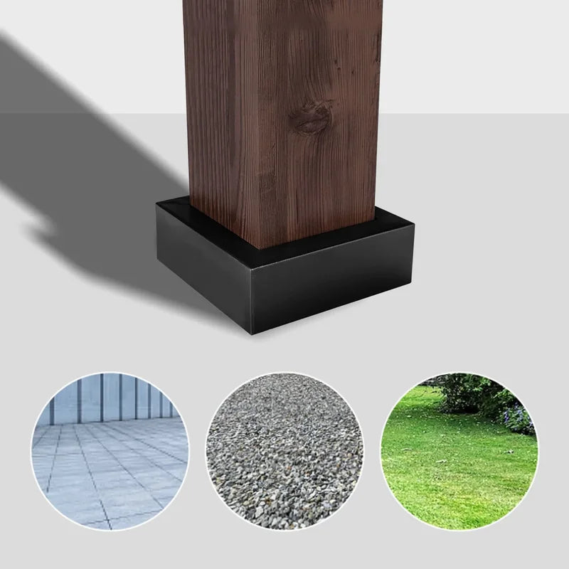 Adopting anchoring plates with cover, steel anchoring plates (with a cover that matches the steel brackets) make it easy to mount and fix to your outdoor lawn surface, wood surface , and concrete surface and still keep its stability.