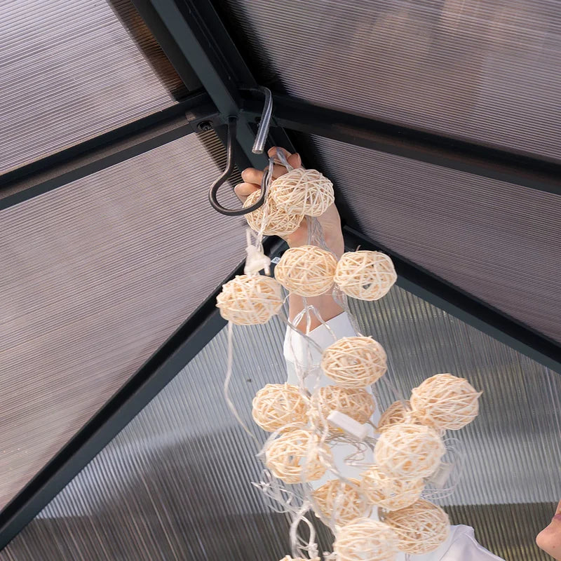 This gazebo is designed with built-in dual rail system which makes sure to handle netting and curtains both easily, we also upgraded the material for the rails, providing you a smooth experience.