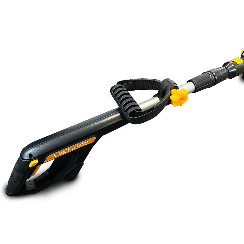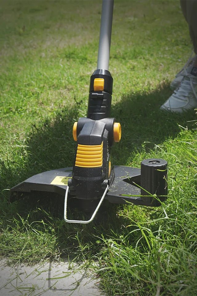 Four features make the cordless weed eater easy and comfortable to use: adjustable telescopic shaft, tiltable trimmer head, fully adjustable handle, and a lightweight (5.34lbs with battery included) design. It can be stretched to fit everyone's size, more convenient to use.