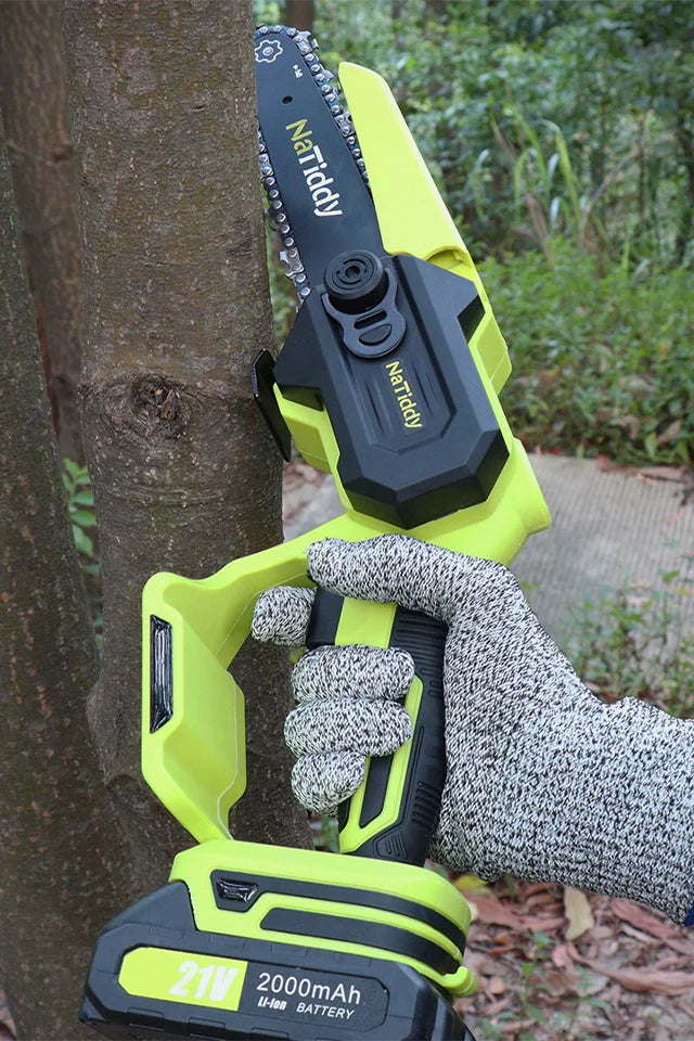 Mini chainsaw has a safety protective bezel to protect your safety when cutting, logging and trimming branches.