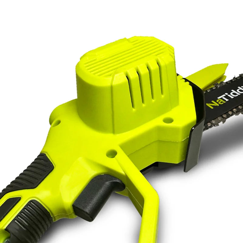 NaTiddy Cordless chainsaw is equipped with 2 X 21V voltage and 2000mAh high capacity battery packs, can provide much longer battery life and more power, continuous use time of about 60 minutes. That's more than enough time to make around 40 cuts in branches (≈10cm). Charging time only takes 2 hours.
